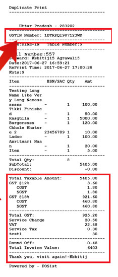| Bill Print template specific for GST |