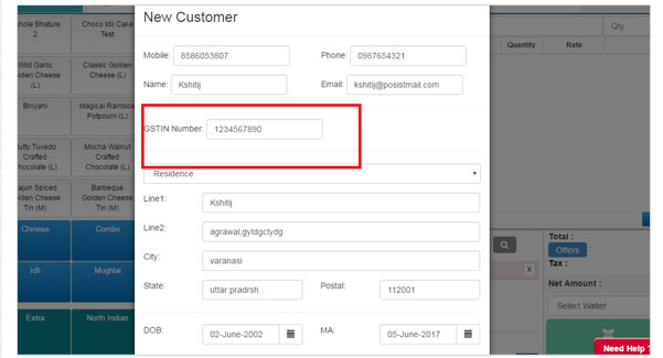 | The unique GSTIN number field can be added at the time of filling the information of the customer at the time of billing. |